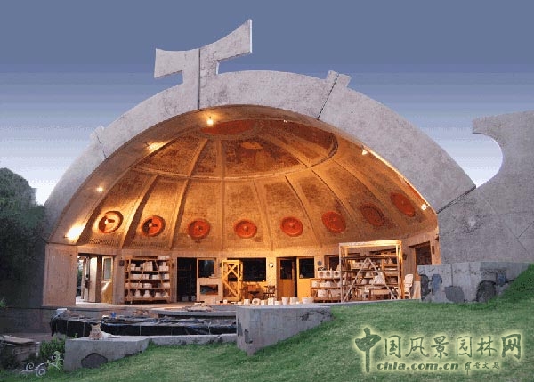 作為最早的新能源試驗站,阿科桑蒂的實施建設堅持兩個基本原則:降低能源消耗和降低汽車使用量。它利用沙漠中最強大的能源——太陽,作為自己所計劃城市的動力之源,采用獨特的圓穹頂篷和高塔式建筑風格,為現代建筑的自然采光和通風系統設計提供了實用和審美相融合的完美范本。同時,腳踏車是社區的主要交通工具,汽車在這種城市是不被允許的,全部的食物、熱源、冷源和各種生活需要可以通過建筑設計和運用物理學的效應而得到。
