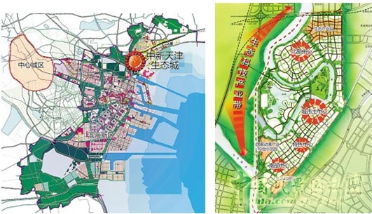 中新天津生態城運用生態經濟、生態人居、生態文化、和諧社區和科學管理的規劃理念,作為第一個國家間合作開發建設的生態城市,以生態修復和保護為目標,建設以綠色交通為支撐的緊湊型城市布局。