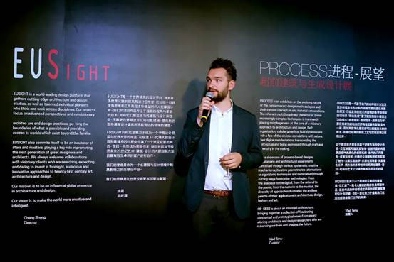隨后,EUSight聯盟策展人VladTenu先生進行了致辭,他首先對到場的設計師與各界朋友表示感謝,表示本次展覽凝聚了一批令人著迷的前衛的設計作品,體現了歐洲最具創意的設計理念與最先進的技術及加工手段的完美結合,其作者都是EUMake和EUSight聯盟內世界級的獲獎建筑師和設計科研者。他認為本次展覽是一次非常成功的展覽。