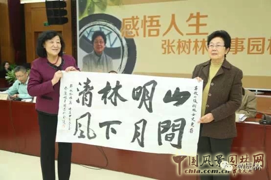 中國風景園林學會副理事長鄭淑玲代表學會贈送書法題字
