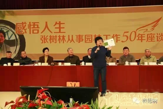 原上海市園林管理局局長程緒珂先生委托周如雯女士宣讀贈言并向張樹林先生贈書
