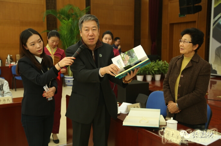 闞躍書記代表中國園林博物館向張樹林先生贈送園博館紀念冊