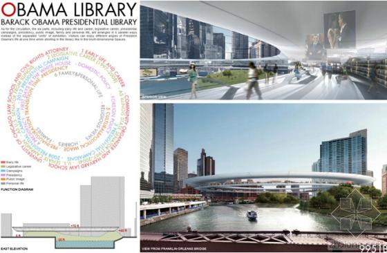 “方案O”旨在創(chuàng)造獨(dú)特的建筑形式呈現(xiàn)巴拉克·奧巴馬總統(tǒng)的魅力;以整體設(shè)計(jì)的理念呼應(yīng)城市格網(wǎng)和水系的特色;以屋頂作為“第五立面”,成為芝加哥摩天樓的新對景;以屋頂上鐫刻的奧巴馬總統(tǒng)格言強(qiáng)化建筑的紀(jì)念性和莊重感。