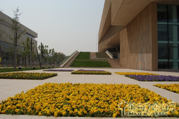 天津市文化中心的景觀綠化工程是天津市的重點綠化工程。整個工程以節約、生態環保為宗旨,各建筑間進行合理的景觀配植,用豐富多種的植物映襯周邊建筑的美感,在突出景觀效應的同時使建筑與周圍的環境更為協調。