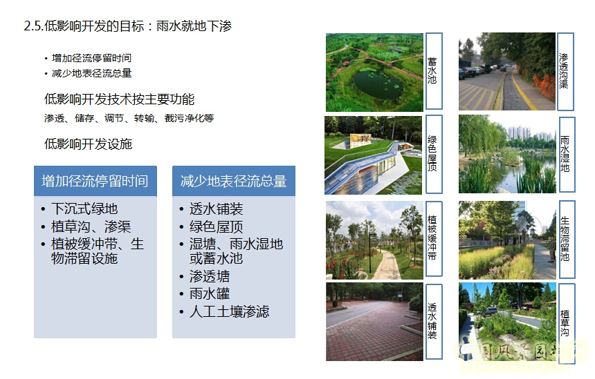 低影響開發最根本的條件是什么?第一,尊重水資源和水質;第二,尊重植被;第三,尊重表土;第四,尊重地形地勢。當然到最后來說它還是要實現生態效益、經濟效益、社會效益。
