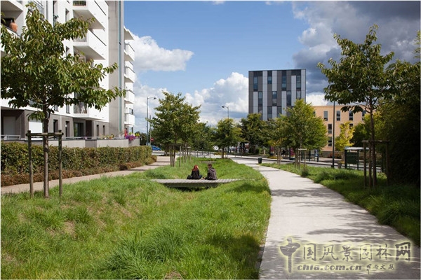 雨水收集池有的是開敞的,有的是地下的,這種地下雨水收集池的設置是為了保存景觀效果。而雨水生態收集池則主要是依靠場地坡度進行雨水收集。此外,這些雨水收集裝置大多是預制的,比如說為了使路面的雨水能夠通過人行道,就設置了雨水收集池。同時生態雨水收集設施,也就是雨水收集草溝,也起到了將行人和建筑隔離的作用。
