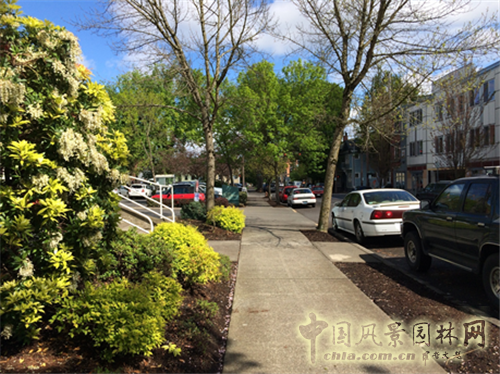 生態(tài)措施讓城市環(huán)境處于一個(gè)自然原始的狀態(tài)。市政府的大樓設(shè)置生態(tài)屋頂;路邊設(shè)置徑流植物區(qū),利用植物和土壤來減緩,過濾和滲透雨水徑流及減少高峰雨水流量,同時(shí)改善雨水徑流水質(zhì);建筑的周邊通過雨水收集進(jìn)行灌溉,引導(dǎo)雨水下滲。停車場、居民區(qū)等改造,采用大量的鄉(xiāng)土種類的植物配植,減少人工養(yǎng)護(hù),處于一個(gè)非常原始的狀態(tài)。