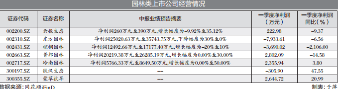 目前有5家園林公司已經披露了中報業績預告,普邦園林、嶺南園林預計業績略增,棕櫚園林、云投生態續盈,東方園林則預計上半年凈利潤同比下降0-30%。