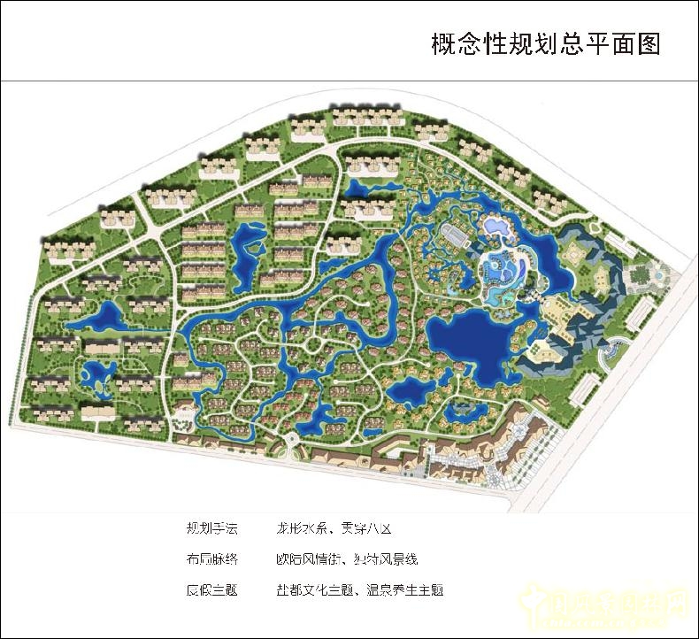 下面這個是位于河南的一個鹽湖度假小鎮,項目所在地基本都是平地,距葉縣大概兩三公里,處于城市的邊緣區,是開發商和政府的合作項目。因為當地有頁巖,所以想做一個鹽湖度假小鎮??梢哉f這個小鎮這基本都是人造的,從一片平地建起了一座城。這里的資源是頁巖,與上面提到的項目一樣,都是資源有限,想要硬做,這樣就會產生很多問題,與生態和可持續發展的理念是相悖的。