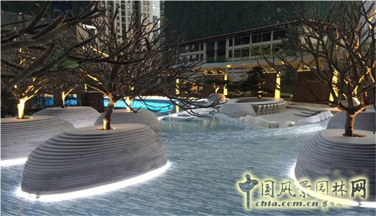 中國風景園林網訊 深圳中心·天元--崗廈河園片區城中村改造項目一號地塊硬質景觀及綠化工程屬于崗廈河園片區改造項目(深圳市建設標準要求最高和難度最大的重大改造項目),位于深圳市福田中心區,由深圳市金地大百匯房地產開發有限公司投資,屬于高端住宅區硬質景觀工程。