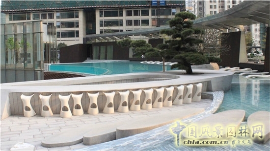 施工范圍包括園建結構、飾面鋪裝、水電安裝、園林給排水、景觀照明等,工程占地面積30500㎡,園林景觀由國際景觀設計公司SWA設計,引入國內外五星級酒店的園林手法,按照四季酒店園林標準,將植栽、點景樹、泳池和燈光巧妙結合,景觀靜謐而優美,形態各異的雕塑點綴于園林中,加強了園林的空間趣味體驗,在城市上空獨辟了一處業主專屬的私家園林。