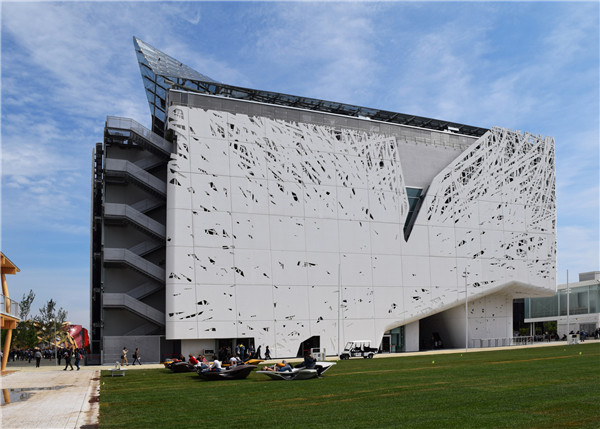 意大利館是具有“意大利制造”特征的正式空間,而Cardo臨時(shí)建筑則代表了意大利的土地和不同的區(qū)域,同時(shí)還包括了意大利館前的一個(gè)歐盟的展廳。