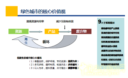 綠色城市在新型城鎮化建設中,強調通過在城市發展低碳經濟、應用低碳技術、改變生活方式,最大限度減少城市溫室氣體的排放,最大限度的減少城市對自然環境的破壞,徹底擺脫以高能耗、高污染、高消費為特征的社會經濟運行模式,形成能源輸入低碳化、能源利用高效化的循環經濟體系,倡導健康、節約、適度消費的生活方式和消費模式,最終實現經濟發展以低碳為方向、市民生活以低碳為理念、政府管理以低碳為藍圖的復合發展目標。