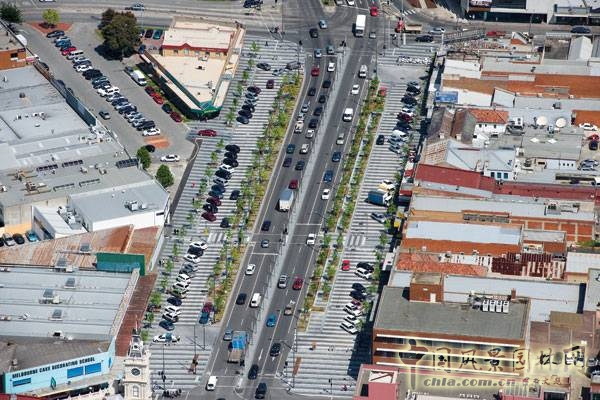機動化交通的發展對城市形態有重要的影響。寬闊的人行道被替換成停車場和道路,當公共廣場的注意力集中在人群而不是汽車的時候,那么這個設計就是成功的。朗斯代爾街是平衡生態與人類需求的一個很好的例子,由Taylor Cullity Lethlean Landscapeand Urban Design和BKK Architects聯合設計。