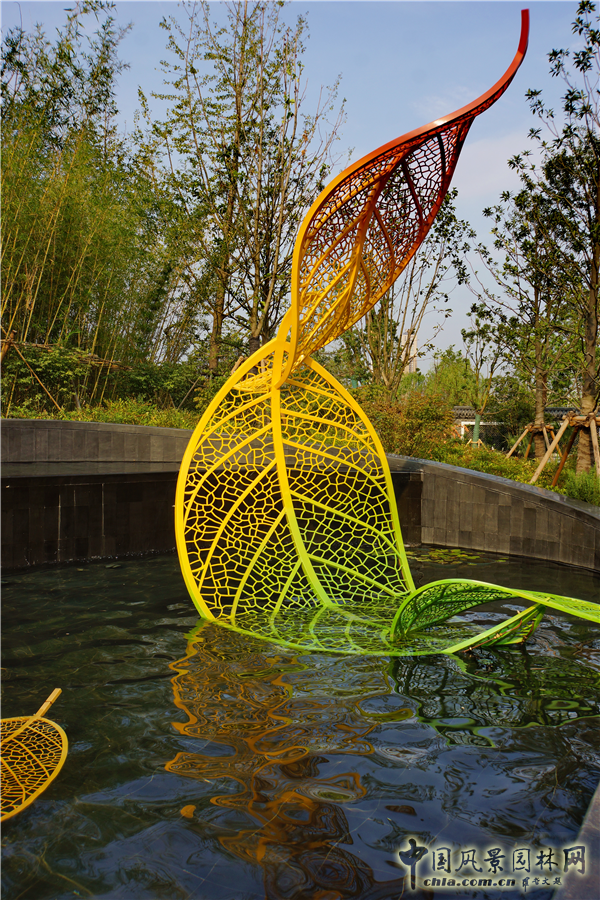 ?。?)雕塑及標(biāo)牌設(shè)計(jì):為了強(qiáng)化360度的綠絲帶效果,雕塑設(shè)計(jì)了片片綠葉組成的綠絲帶形象作為綠絲帶的收尾點(diǎn)睛之處。包括標(biāo)識標(biāo)牌等細(xì)部小品設(shè)計(jì)都結(jié)合主題表達(dá)以綠絲帶形象出現(xiàn)。