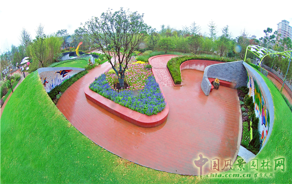 上海園此次的文化展示旨在表達(dá)都市繁華盛景下的低調(diào)海派意境,主要通過低調(diào)的隱喻手法,采用色彩和材質(zhì)來展現(xiàn)上海文化。設(shè)計中采用了三大色系:低調(diào)灰、陶土紅、核心綠。以灰磚擋墻凸顯上海弄堂意境,以紅色瓦片路面展現(xiàn)上海洋房風(fēng)情,最終突出核心綠絲帶。三大色彩主控全園,達(dá)到純粹雅致的效果。