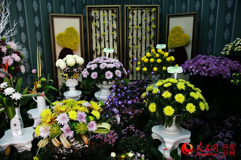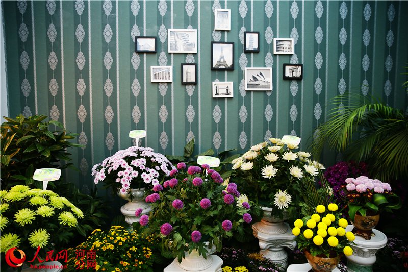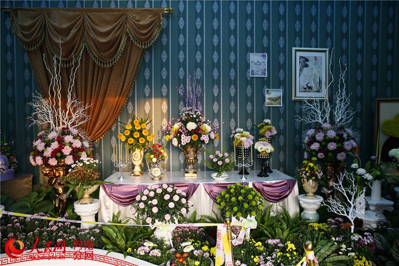 歐洲館正廳通過歐式餐臺禮儀花插,充分展示了歐洲各國菊花品種,體現了菊花在現代家庭環境裝飾中的運用,墻面的歐式畫框和空間的歐式帷幔,營造出歐式風情。