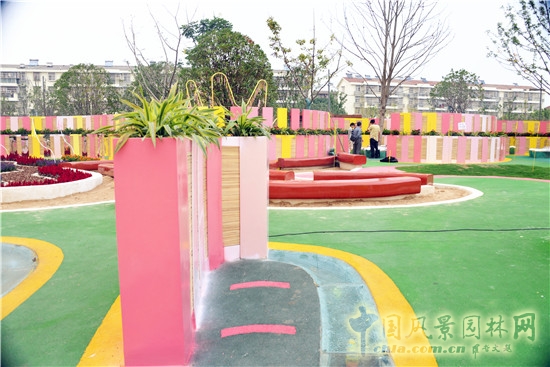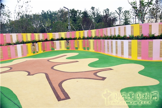 展園內有供親子游戲的娛樂設施,如花鏡迷宮、彩砂池、陽光草坪、趣味攀巖墻等。展園的設計在營造趣味性的同時也十分重視安全性,花園呈現出親切的童趣,希望喚醒游客心中的童年回憶。