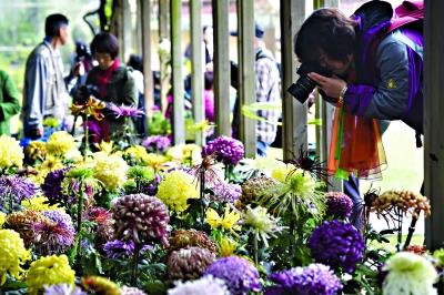 市民在武漢植物園欣賞菊花精品 胡九思/攝