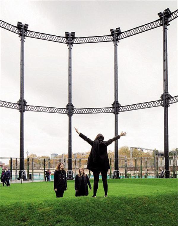 其實,公園的金屬結構已經有超過150年歷史了,它是從原址上的八號煤氣站(Gasholder No.8)保存下來的架構,當時倫敦最大的煤氣廠潘克拉斯煤氣廠(Pancras Gasworks)在這里生產和儲存煤氣。現在,八號煤氣站已經被列為英國二級保護建筑。這些結構曾經被暫時拆遷到英格蘭北部的約克郡,而為了配合King’s Cross改建計劃,它們又回到倫敦,重新豎立。