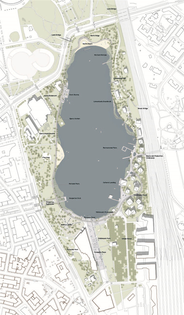 該項目將這一將赫爾辛基市中心一分為二、污染嚴重的灣區改造成迷人的城市綠肺,同時將市中心整合為一體。新的人行道和自行車道將重新連接起灣區周邊的街區,提供多功能的濱水長廊,同時清理被污染的水質。