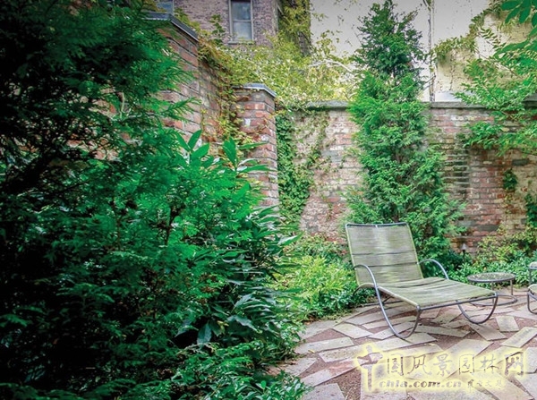 高大的樹冠在院子與外圍建筑之間形成了天然的屏障,保證了“綠洲”與外界的隔絕。院子的左端是設計師在已有磚墻的基礎上添加的幾根結構柱。