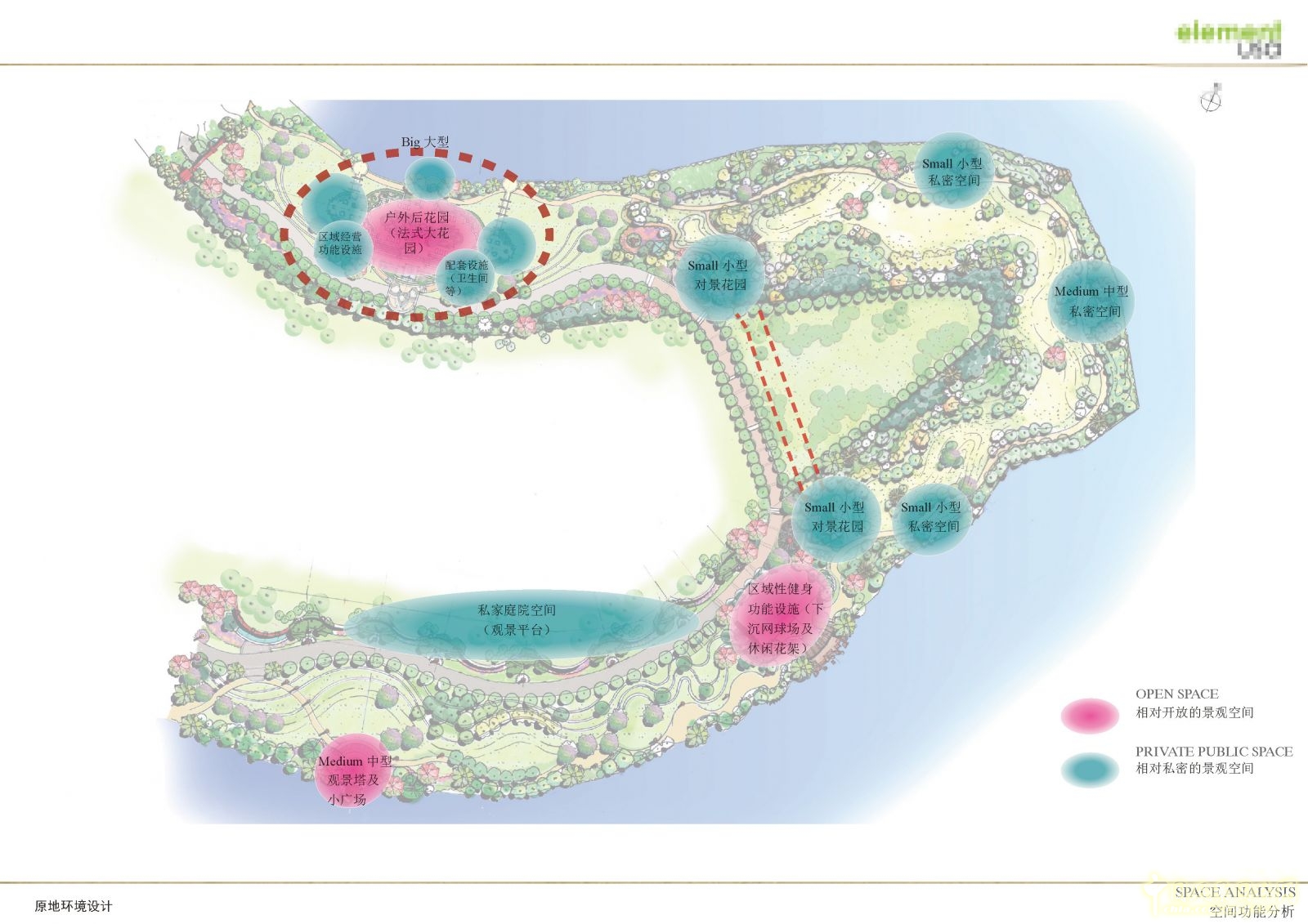 區域功能以相對開放的景觀空間和相對私密的景觀空間這兩種形式劃分。