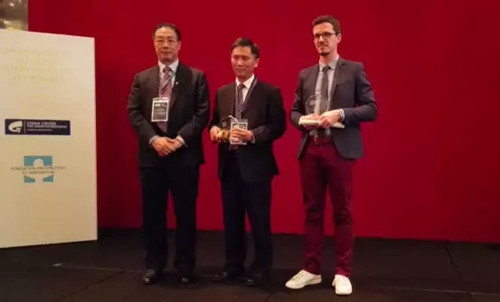 香港獲得2015中歐綠色和智慧城市獎(jiǎng)“榮譽(yù)獎(jiǎng)”,香港環(huán)境局局長(zhǎng)黃錦星領(lǐng)獎(jiǎng)
