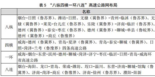 在高速公路方面,完善“八縱四橫一環(huán)八連”高速公路網(wǎng),覆蓋除長島縣以外的所有縣級及以上城市、重要機場和主要港口。其中,“四橫”為威海-德州(魯冀界)、青島-夏津(魯冀界)、青島-泰安-聊城(魯冀界)、日照-菏澤-蘭考(魯豫界)四條高速公路。