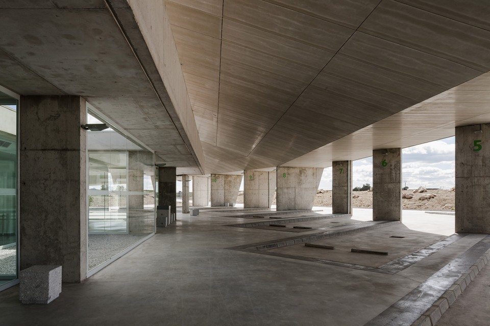 “巨石”下,傾斜的建筑體量慢慢升高、彎折,空間變得更加寬敞,逐漸從員工停車場過渡到半開放的巴士停泊區和站臺。真正的乘客大廳位于戶外。