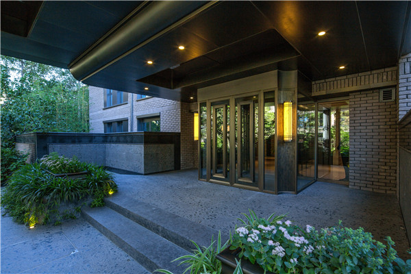 單元入戶區(qū)域是景觀設(shè)計(jì)中的另外一個(gè)難點(diǎn),在功能上同時(shí)連接了建筑、室內(nèi)和景觀空間,在風(fēng)格上又必須與上述各項(xiàng)協(xié)調(diào)一致。景觀設(shè)計(jì)在充分尊重建筑設(shè)計(jì)、室內(nèi)設(shè)計(jì)對(duì)風(fēng)格的追求及功能要求的基礎(chǔ)上,社區(qū)大門(mén)的鍛銅金屬材料延伸運(yùn)用到單元入口門(mén)頭上。雖然尺度不同,但通過(guò)運(yùn)用相同的材料工藝、匹配色彩體系,追求從入口比例關(guān)系到入口細(xì)節(jié)的精致得體。