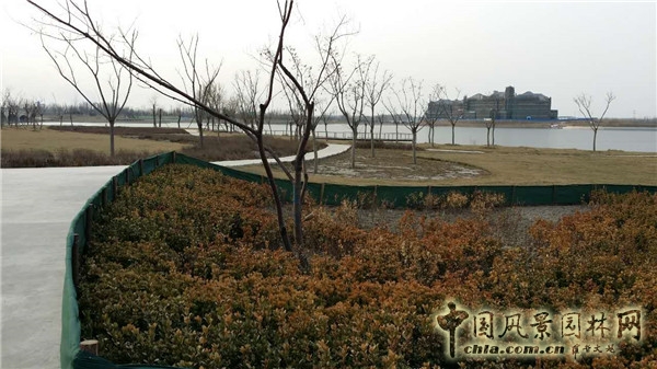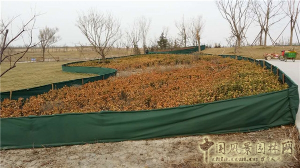 同樣位于河北廊坊的文安魯能生態區二標段項目占地面積15萬平方米,綠地率95%,該工程為典型的園林工程類型,軟景、硬景都較為簡單,但是施工范圍較廣。項目的主要施工內容有:園路、微地形、碼頭、印花平臺、植物栽植、噴灌系統等。