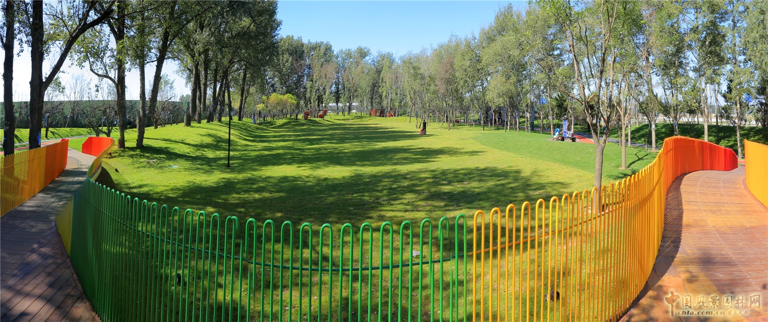 為最大限度保留良好的原生綠化,團(tuán)隊(duì)借勢(shì)以曲線路銜接,用限定視線的方式打破人工樹陣;用設(shè)計(jì)彌補(bǔ)高低起伏的地勢(shì)差,形成整個(gè)橋體波動(dòng)起伏的韻律感和動(dòng)感;欄桿的彩虹色恰好也彌補(bǔ)了北京冬日漫長(zhǎng)無(wú)色彩的遺憾。動(dòng)感又極具色彩的彩虹橋讓景觀與居者產(chǎn)生了潛移默化的化學(xué)反應(yīng)。