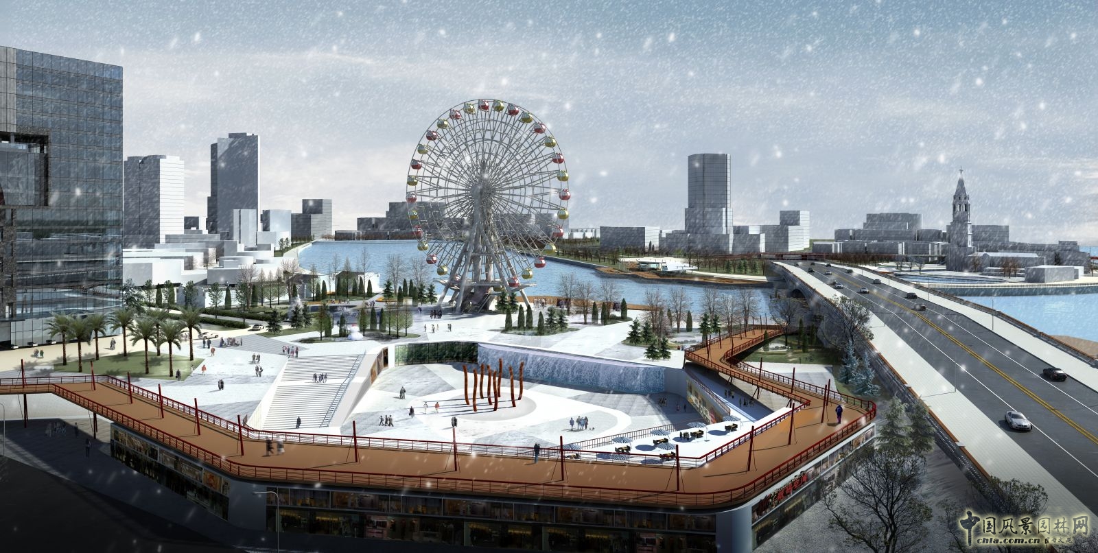 塑造新的場地地標,摩天輪與下沉廣場,配合大型水景落瀑和高架步行橋,突出人氣的凝聚力,營造豐富的空間層次和多元的商業氛圍。