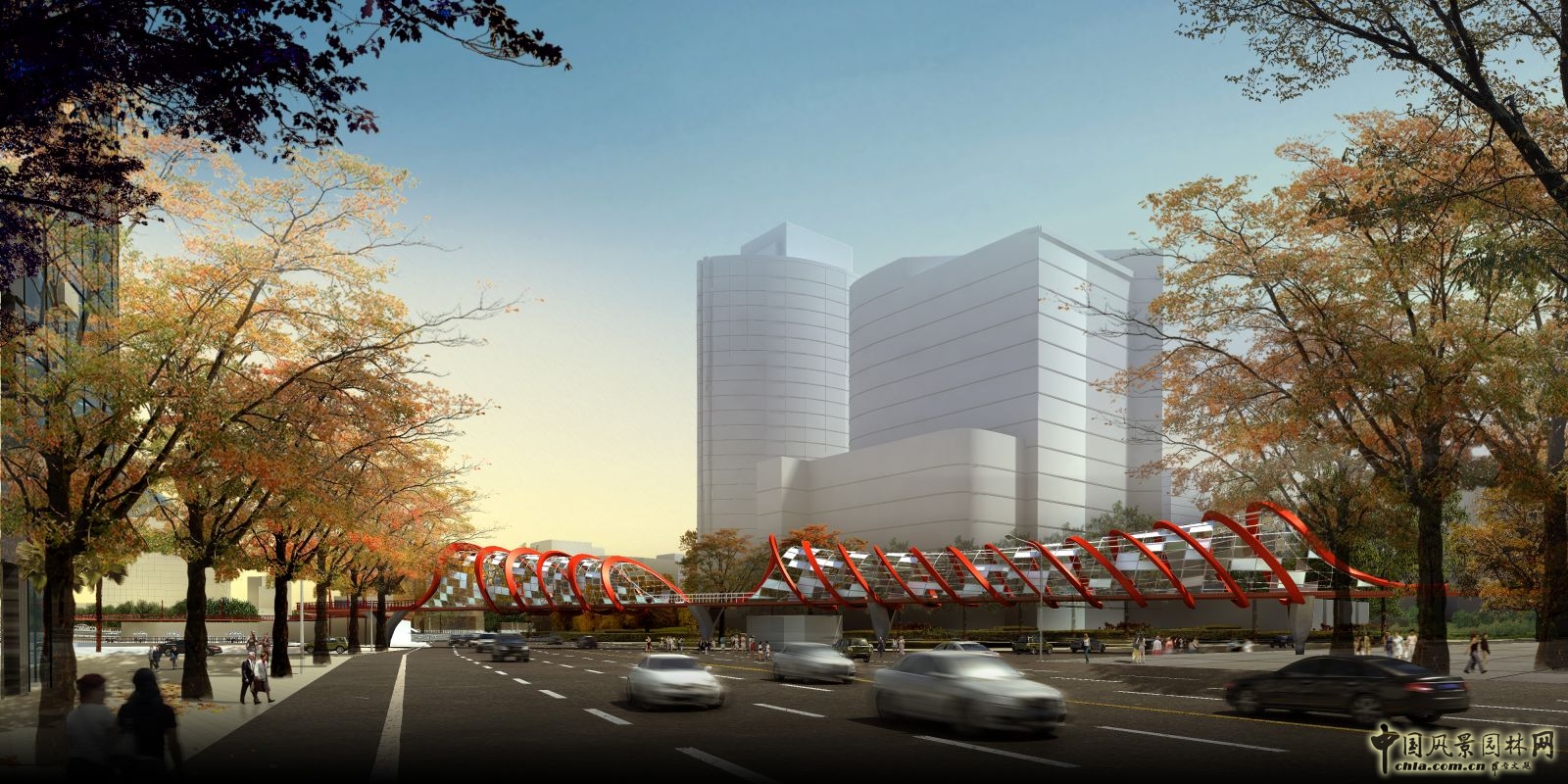 空中天街——紅色螺旋構(gòu)架,營造出時空穿梭之感,網(wǎng)狀菱形裝飾,凝結(jié)著寧波城市的歲月千禧。是天一廣場與三江口空間重要軸線景觀和人行交通要道,也將成為中山路三江口段頗具時代感的新節(jié)點。