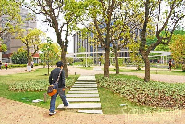 中央廣場、梯田景觀、北大街之間沒有不協調的元素,它們共同在校園的開放空間中形成一個景觀,這就是為什么九州產業大學的景觀設計是很好的例子。