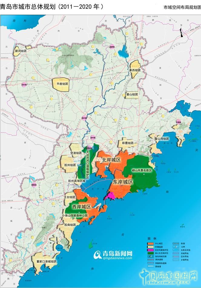 今年1月8日,國務院正式批復《青島市城市總體規劃(2011-2020年)》。日前,青島新聞網記者從規劃部門獲悉,新一版《總體規劃》已經出爐,根據“全域統籌、三城聯動、軸帶展開、生態間隔、組團發展”城市空間戰略,青島將建設組團式海灣型宜居幸福的現代化國際城市。
