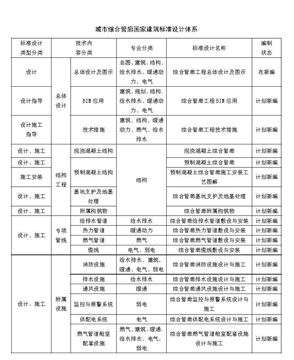 為進一步推動城市綜合管廊的技術發展和工程實踐,提高城市綜合管廊設計、施工的規范化程度,推進綜合管廊主體結構構件標準化,確保工程質量,我們通過大量調研,廣泛征求意見,依據我國現有標準,結合我國各地發展現狀,針對綜合管廊設計、施工的普遍需求,初步構建了“城市綜合管廊國家建筑標準設計體系”。