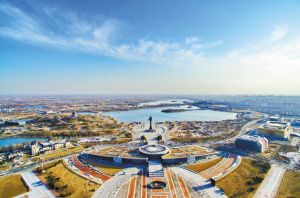這是3月12日記者使用無(wú)人機(jī)拍攝的唐山世園會(huì)綜合展示中心和丹鳳朝陽(yáng)廣場(chǎng)。