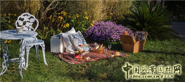 “莫奈花園”以紫色花卉作為精彩開端,通過空間的抬升轉(zhuǎn)化,視線焦點的變幻,打造精致自然的花園;頂端高潮部分,以觀賞草為主,營造歐式小徑,搭配以景石和軟裝飾品,花團錦簇、色彩斑斕、野趣叢生的整體氛圍。