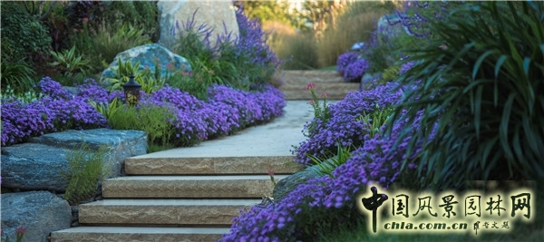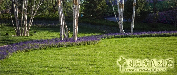 薰衣草,是“等待愛情”的紫色小花。沿著園路兩側(cè)連綿種植,營造一片浪漫的花的海洋,其間點(diǎn)綴挺拔優(yōu)雅的叢生白樺,增加了豎向空間感受,減小場地空曠感。在這里,現(xiàn)實(shí)與浪漫同在、陽光與藝術(shù)并存。