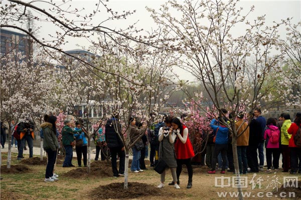 多年來,公園科研人員潛心鉆研,從引進的130多個櫻花品種中精心篩選出不僅適合在京城種植,而且能夠在早春開花的櫻花苗木。特別是今春亮相的“苔清水”“越之彼岸”“八重紅彼岸”等品種櫻花,都是由公園櫻花基地自行繁殖而成,并首次在公園定植。這些新品種櫻花花色大多呈現粉色,單瓣或半重瓣,新品種的增加,也使得目前園內可供觀賞的櫻花品種突破30個,總數達到2300余株,為歷年之最。