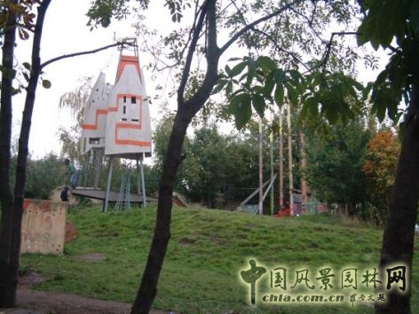 中國風景園林網訊  英國哈克尼,建筑師亞當(Liz Adams)和薩瑟蘭(Sutherland)為當地的孩子們設計了一個可以盡情暢想和游戲的"常青探險樂園"。