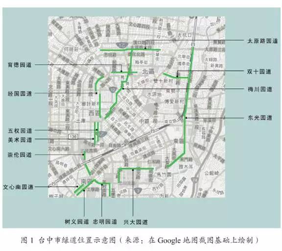 臺中市的綠園道(即綠道)是比較典型的城市綠園道。從早期1900年作為生態保護區域的城市邊界,到1950年后隨著城市范圍的不斷擴張,作為限制城市發展的綠帶。再到2000年之后政府為推動城鄉風貌運動,綠道開始融入城市背景中,成為城市內部的綠地,是全臺灣從日治時期保留下來,最完整的綠園道系統。