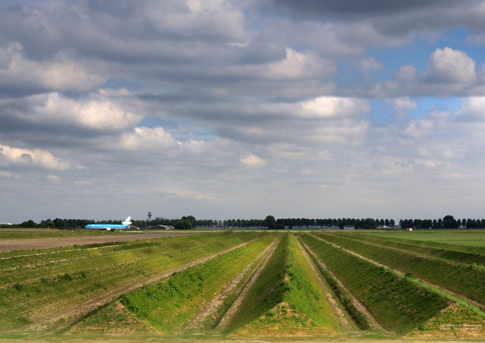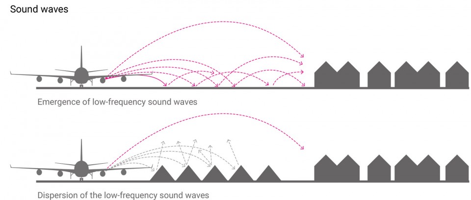 2003年Schiphol機場的第五跑道正式投入使用,與其比鄰而居的居民也自此陷入了因為飛機起降而產生的,讓人不勝煩擾的大地噪音之中。研究表明10分貝的降噪便大大提升人們的生活質量,而同時居民也反映在農田耕作期間噪音似乎有所減少,理論與實踐的相結合成為了團隊研究的這一降噪景觀的出發點。
