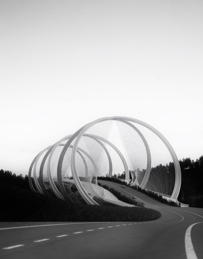 基于獨特的雙螺旋結構,這座橋僅用了少于傳統項箱形梁5倍的鋼材。