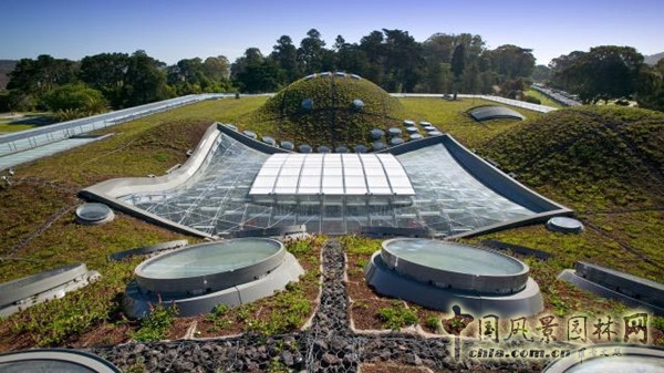 作為舊金山一流的可持續建筑項目,加州科學博物館有一個2.5英畝的綠色屋頂。項目注重了生境質量和連通性并且獲得了LEED白金級認證。這棟建筑的建筑團隊Renzo Piano建筑工作室邀請了SWA建筑團隊和Rana Creek建筑公司的aul Kephart一起合作設計了生態屋頂。SWA建筑團隊為屋頂和整個博物館提供了全部景觀建筑設計。