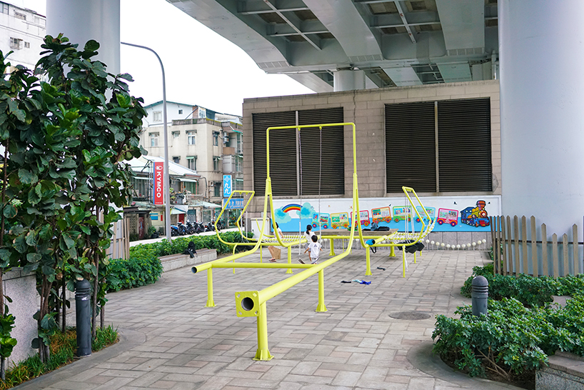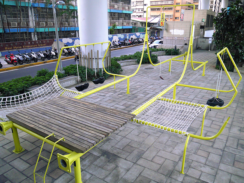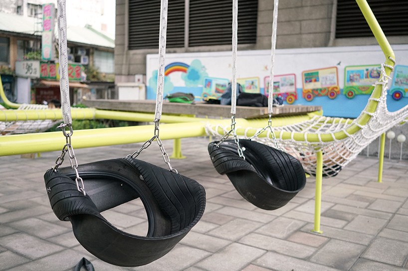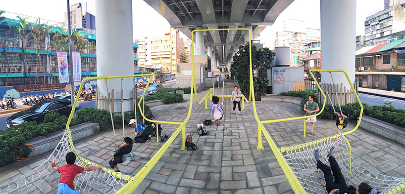 西班牙藝術團隊basurama一直致力于廢品創新用途的開發工作,試圖以此突出人道主義消費社會中循環利用資源的重要性。而都市酵母是一家臺北設計工作室,致力于發起實驗性設計活動,吸引市民參與其中從而讓城市更具活力。近日,basurama與都市酵母共同設計了市民秋千實驗基地,在這一項目中,設計者完全利用廢舊材料創造出一個色彩明快的臨時活動場。basurama與都市酵母本次設計的裝置是2016臺北世界設計之都活動“Re-create Taipei臺北鄰里公園翻轉計劃”中的空間活化案例之一。項目旨在利用都市廢料自愿挑戰人們對單調的塑料游樂設施的既定印象,同時擴展人們對公共空間及公園概念的理解。