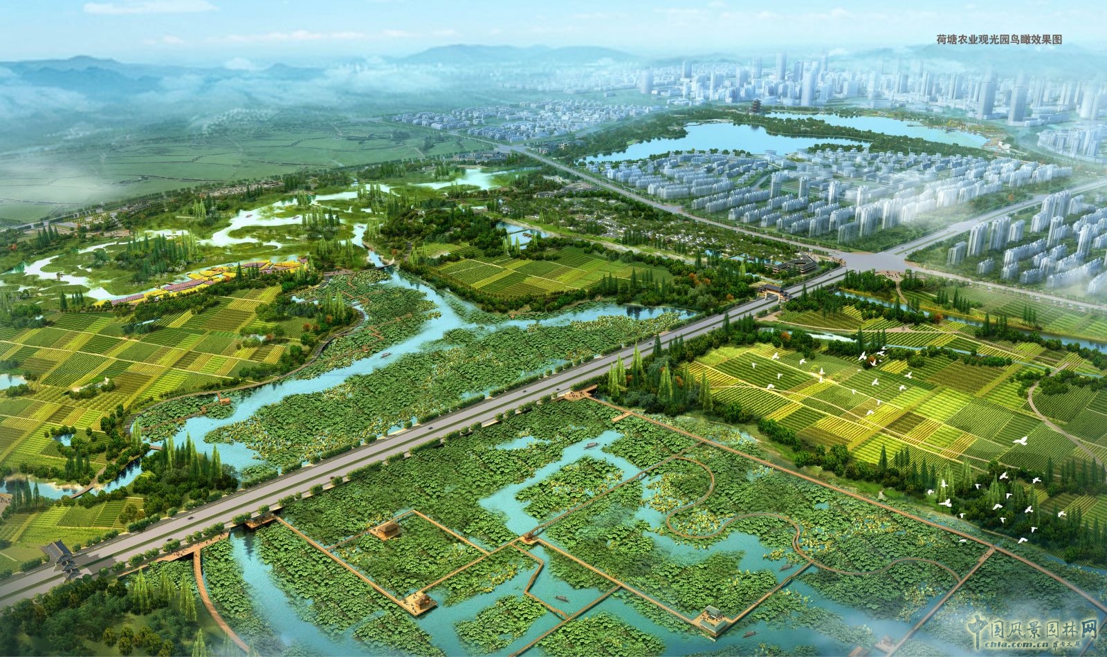 整體空間形成“湖塘相擁,山水田城”的空間格局,劃分為西湖綜合型公園、東湖生態(tài)公園、濕地公園、哀牢文化村、荷塘觀光園五大景觀功能區(qū),通過(guò)多功能游覽道串聯(lián)五區(qū),形成“依山臨湖、瓊臺(tái)弈閣、田園環(huán)繞、荷池相擁、哀牢部落、蘆蕩風(fēng)情”的青華湖景觀意境。