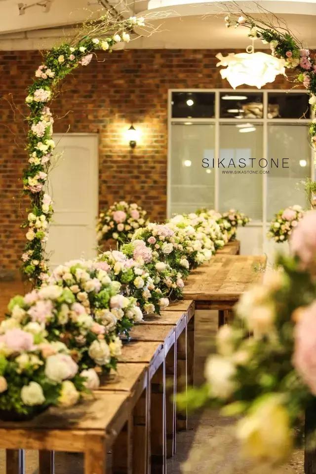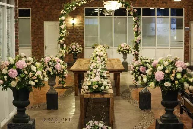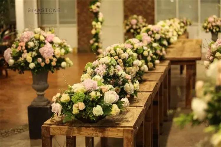 路引擔任著整場“婚禮花藝”視線引導的重要角色。一方面,其大小應當符合花器的比例;另一方面,體量也要足夠吸引視線。